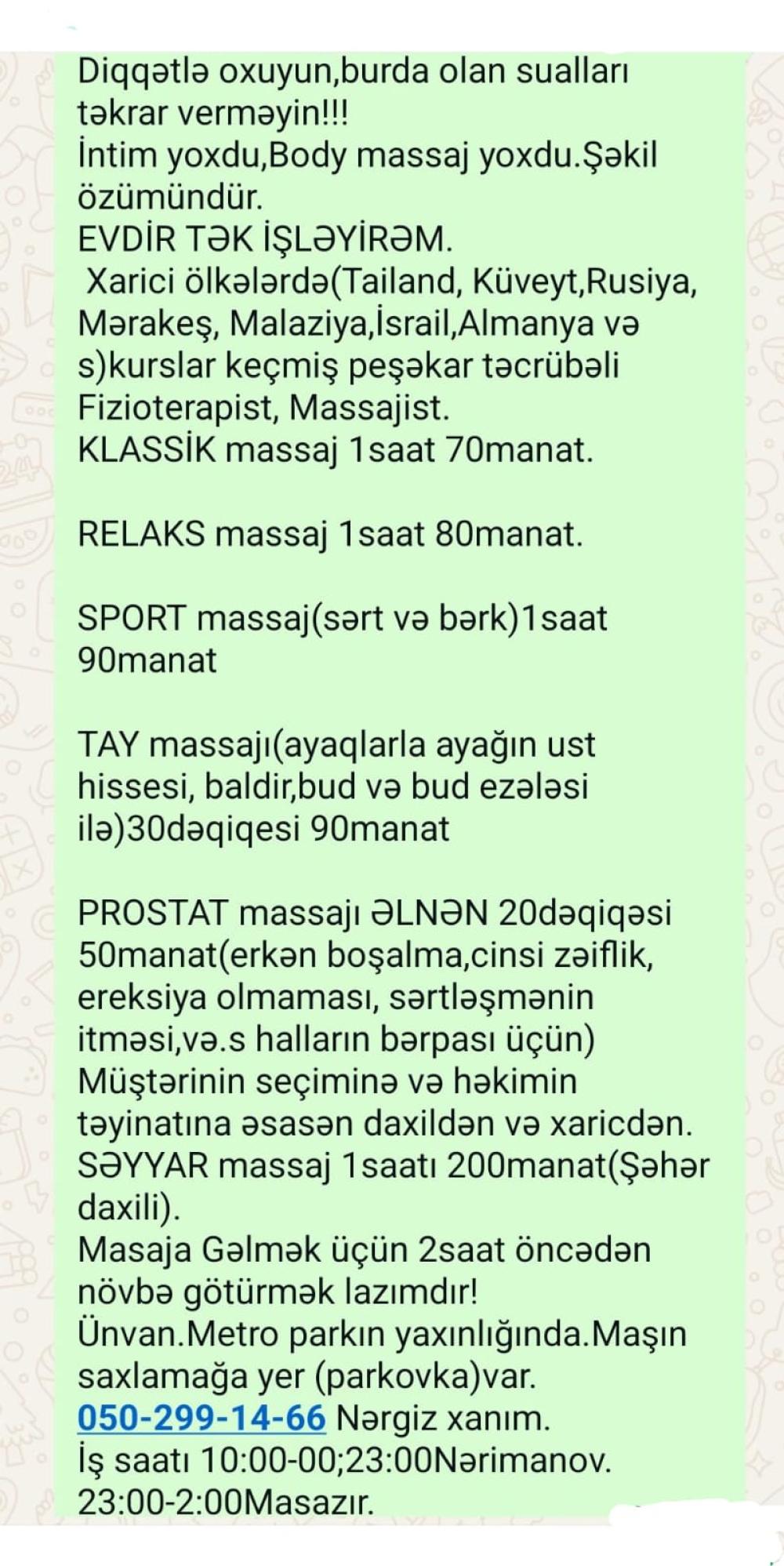 SƏYYAR massaj 1saaı 200manat(şeher daxili)