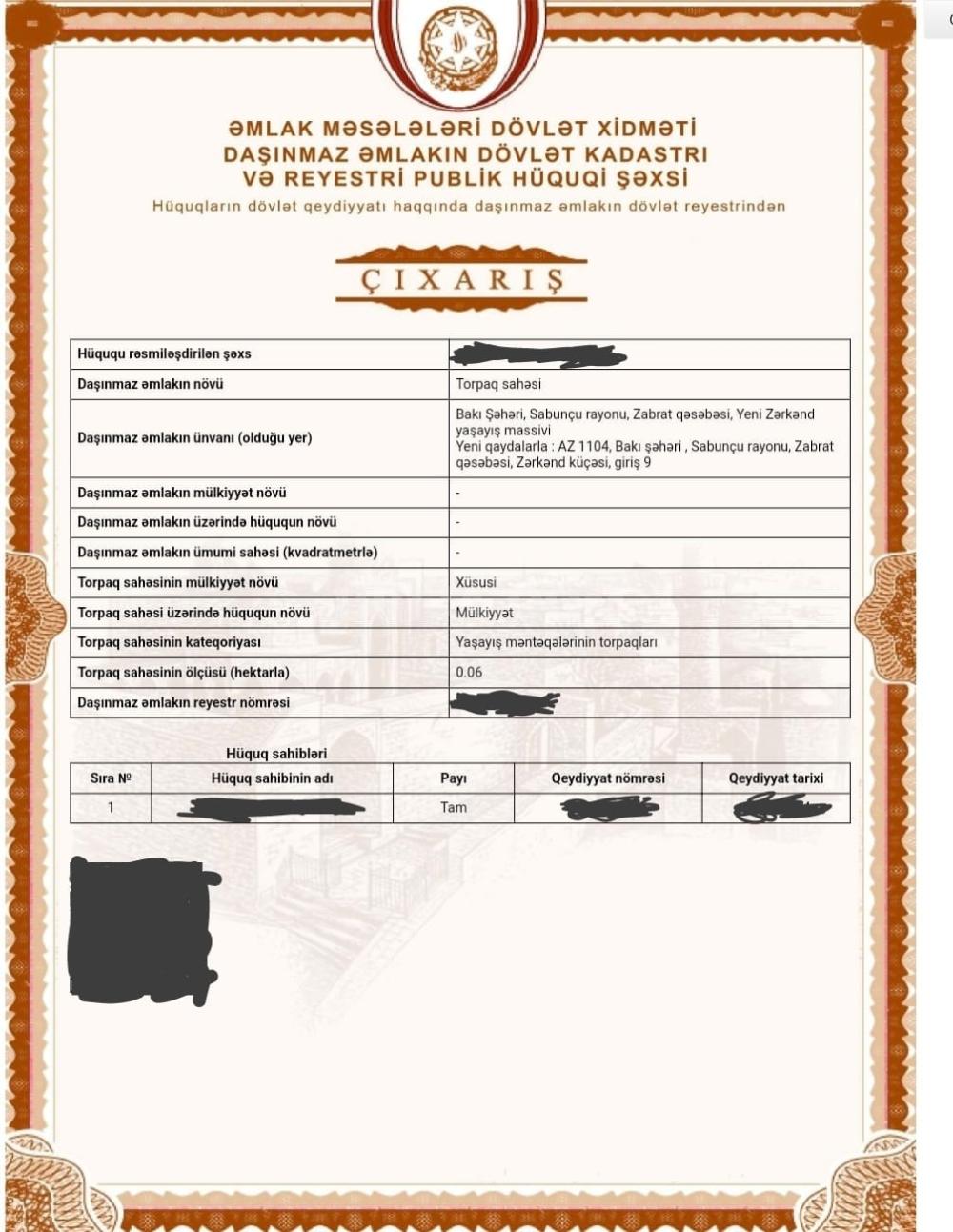 Zabrat qesebesi Zerkend deyilen erazide 6 sot torpaq sahəsi icinde 120 kvm.3 otaq+Zal nezerde tutulmus yarimtikili satilir.Evin fundamenti 40x40 tokulmusdir. Sənəd Cixaris.ferdi yaşayiş Qiymət 67000AZN Real aliciya razilaşma olacaq.